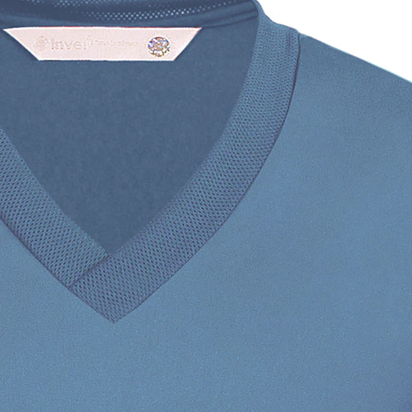 Confeccionada com tecido que contém a tecnologia Biocerâmica MIG3®, a Camiseta Invel® foi desenvolvida a partir de pesquisas clínicas realizadas pelo Grupo de Dor do Hospital das Clínicas de São Paulo, que comprovou sua eficácia como tratamento coadjuvante no alívio da dor lombar. A camiseta possui registro na ANVISA/Ministério da Saúde. Com tecido leve e sem compressão, ela se ajusta à silhueta, podendo ser usada como uma segunda peça de roupa. Com uma charmosa telinha no decote, a camiseta é versátil e pode ser usada com calça jeans, na academia, no trabalho, sendo funcional para diversas ocasiões. Ideal para todos os tipos de mulheres. Para mulheres com maior saliência abdominal, cores escuras ajudam a disfarçar as marcas, assim como peças usadas por cima da camiseta.